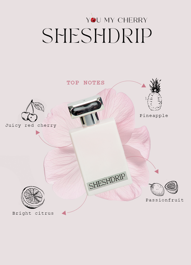 We’re proud to introduce our first original fragrance. It opens with a burst of juicy cherry and citrus, unfolds into a floral heart of jasmine, peony, and orchid, and finishes with a warm embrace of vanilla, musk, and soft woods. A sweet, airy creation that marks the beginning of our journey into signature scents.